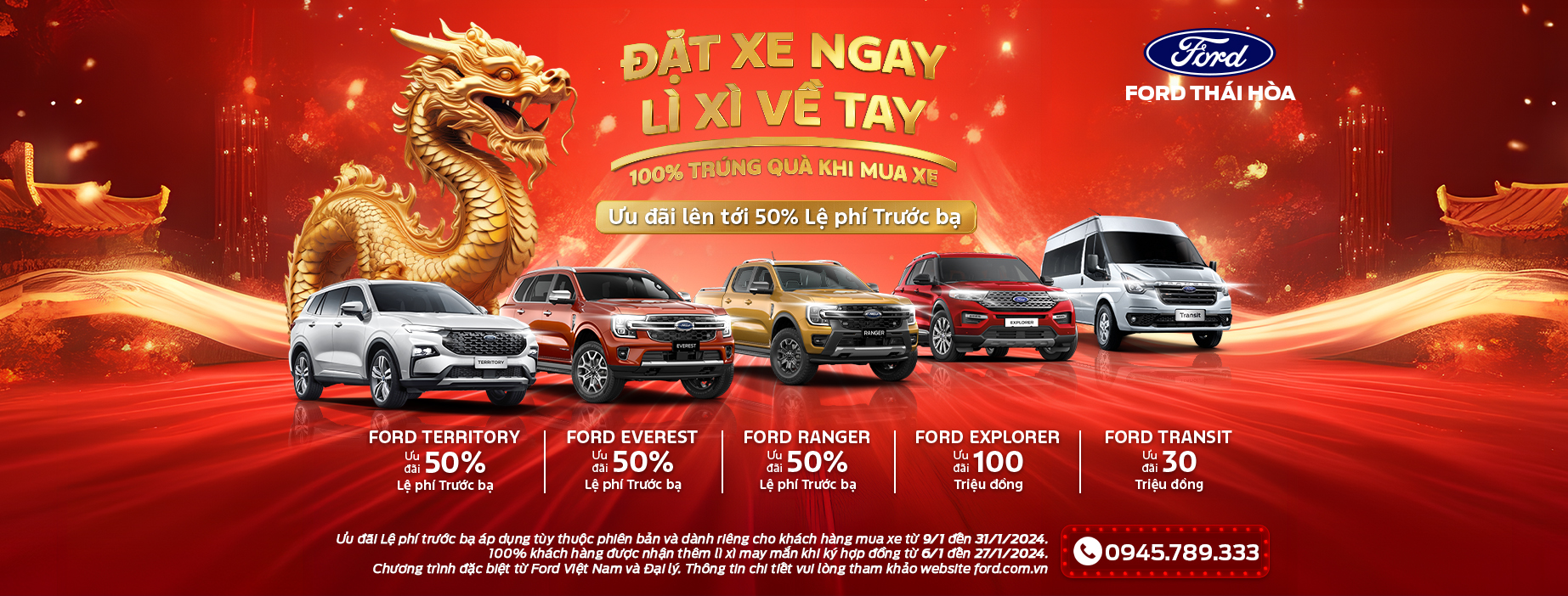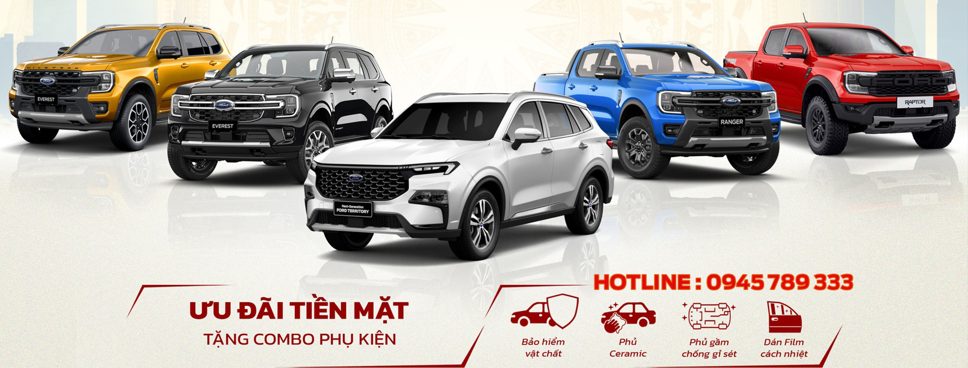 == Chọn dòng xe ==FORD RANGER THẾ HỆ MỚIFORD RANGER RAPTOR 2023FORD EVEREST THẾ HỆ MỚIFORD EXPLORERFORD TRANSITFORD TERRITORY