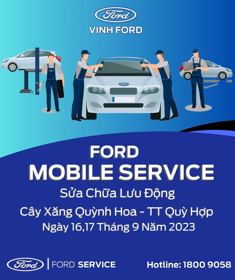Để được phục vụ Sự Kiện Mobile Service – Sửa chữa lưu động tại Quỳ Hợp, tri ân Quý Khách Hàng khu vực miền Tây xứ Nghệ tốt hơn. Vinh Ford – Văn phòng đại diện tại Thái Hoà xin phép không nhận khách hàng dịch vụ vào thứ 7 ngày 16/7/2023